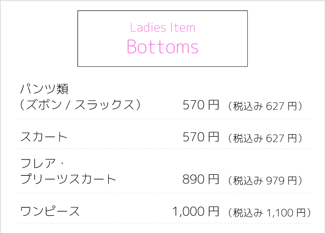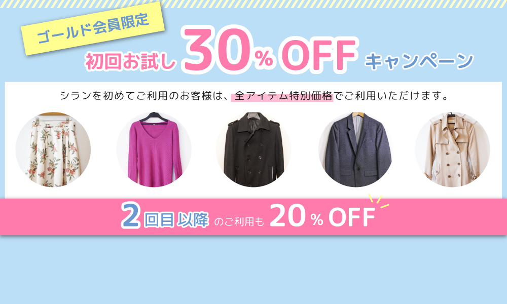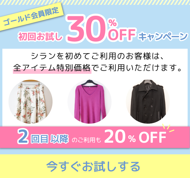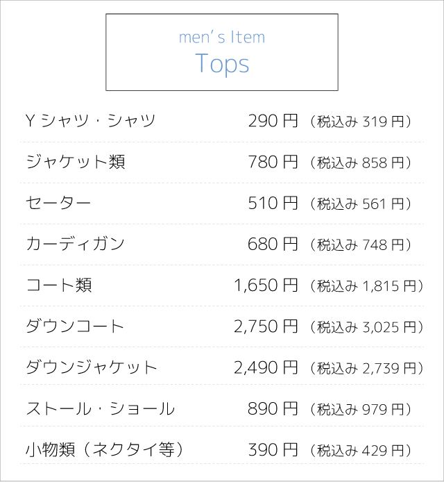 • 各種オプション無料(汗ぬき、防水、防虫、エリ袖加工、毛玉取り、ボタン付け、抗菌加工)
